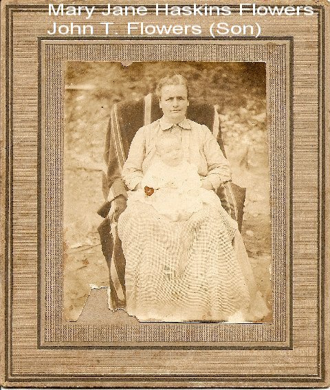 Mary Jane Haskins Flowers (Molly) Wife of Martial Conly With John T. Flowers who is a descendant of Robert Dickson Flowers